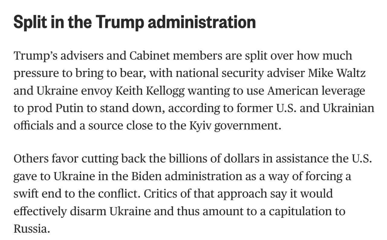 По данным источников, советник по нацбезопасности Майк Уолтц и спецпосланник Трампа по Украине Кит Келлог "хотят использовать американские рычаги, чтобы подтолкнуть Владимира Путина уйти в отставку".