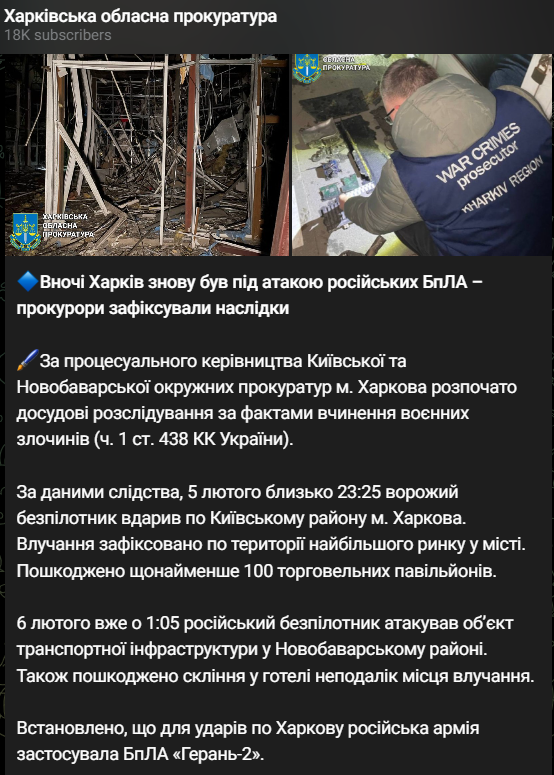 Россияне атаковали ударными БПЛА Харьков. Повреждено около 100 торговых павильонов "Барабашово"