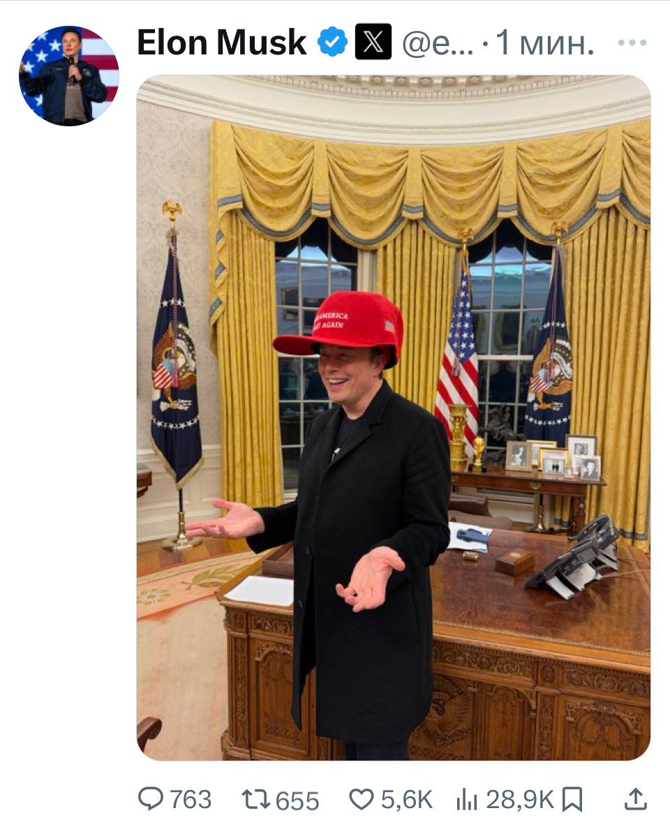 Бизнесмен Илон Маск и журналист Такер Карлсон побывали в Овальном кабинете Белого дома.