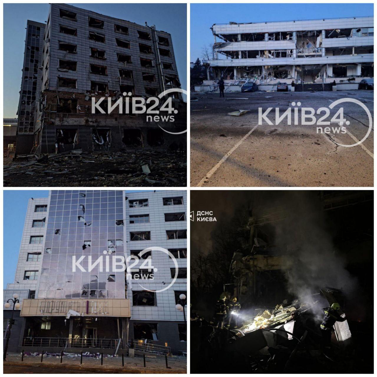 8.12 Киевские паблики показали фото офисных зданий, которые пострадали на Оболони вследствие утренней атаки.