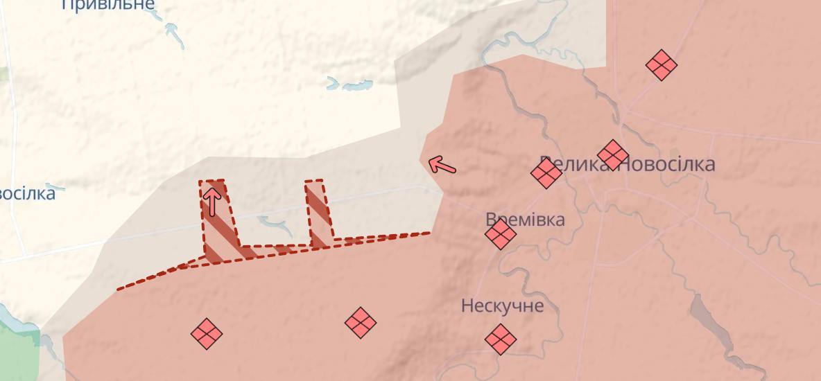 10.06 Армия РФ продолжает активно наступать к западу от Великой Новоселки, свидетельствует карта Deep State.