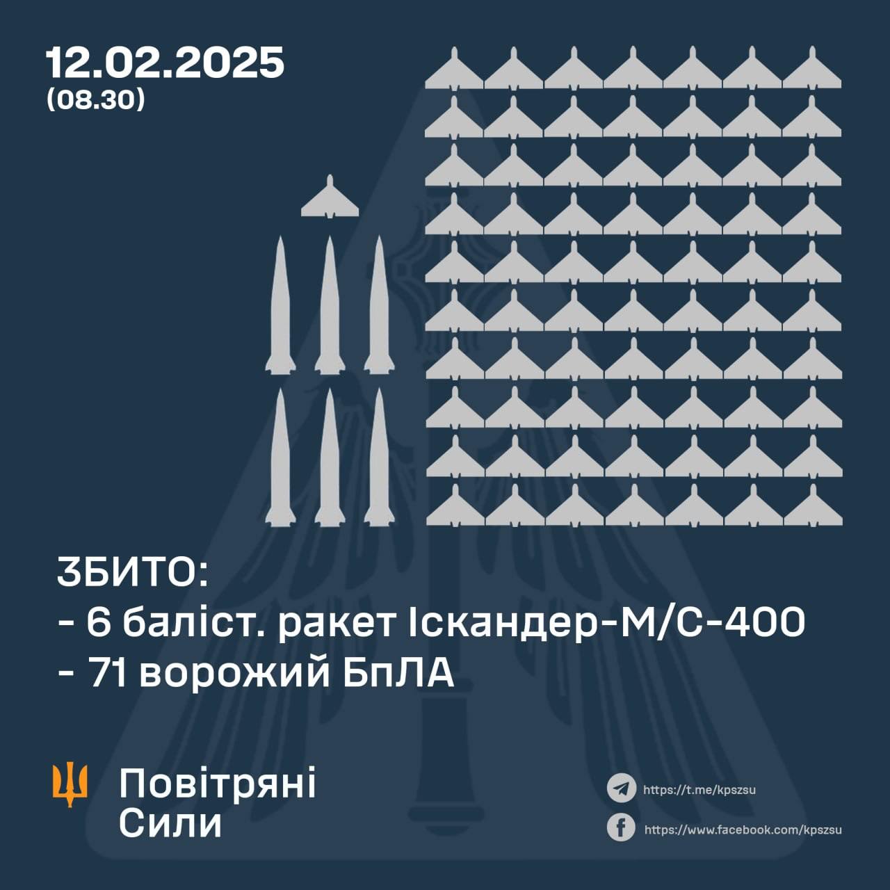 Между тем в Воздушных силах ВСУ заявляют, что сбили шесть запущенных по Украине баллистических ракет. Предположительно, именно они обстреляли Киев (поскольку запускались с севера).