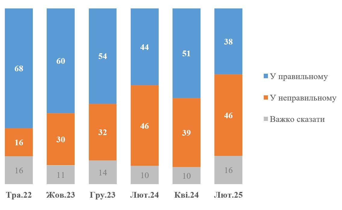 В Украине большая часть опрошенных жителей (46%) считают, что дела в стране движутся в неправильном направлении.