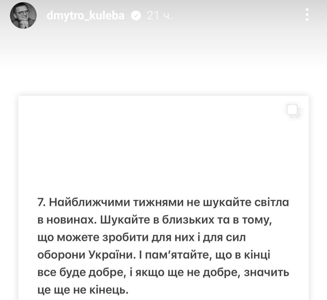 Об этом написал в Инстаграме бывший глава Министерства иностранных дел Украины Дмитрий Кулеба.