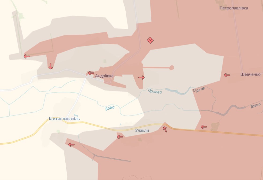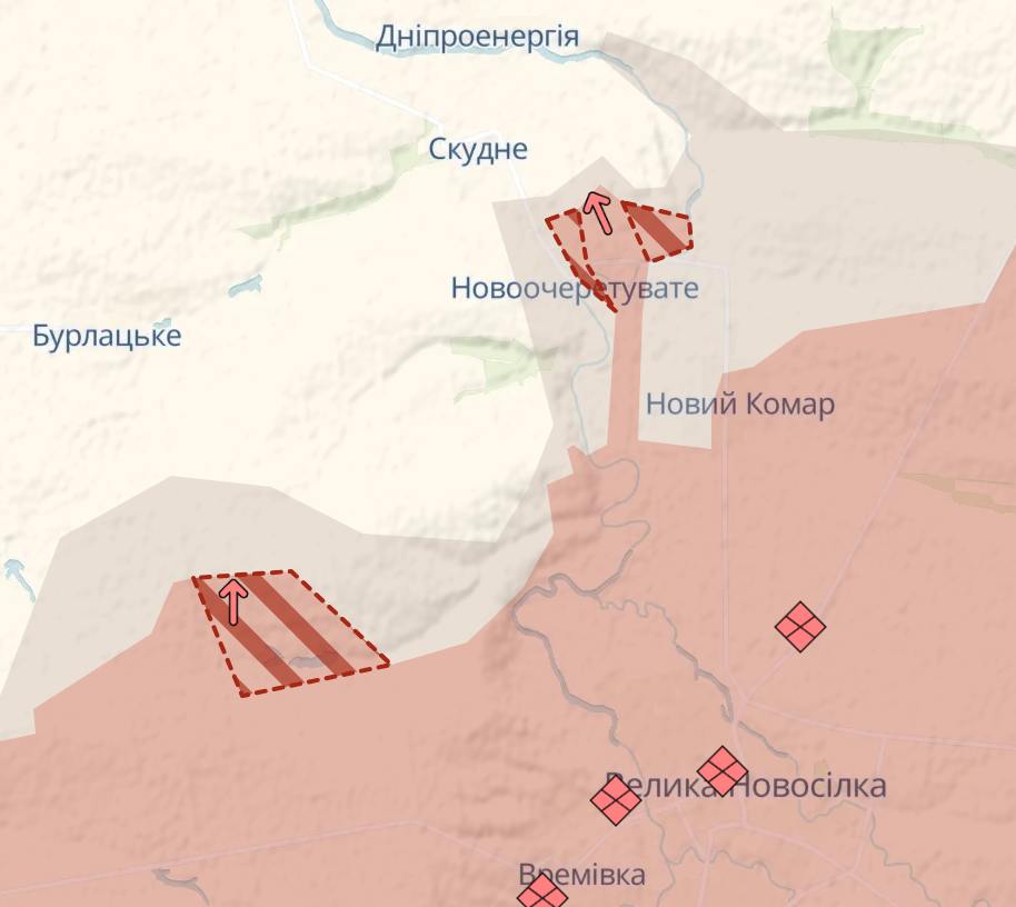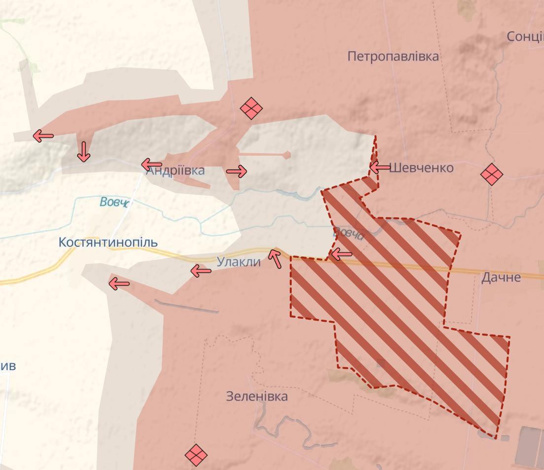 Также РФ продолжила продвижение севернее Великой Новоселки и около Барановки, что рядом с трассой с Покровска на Константиновку.