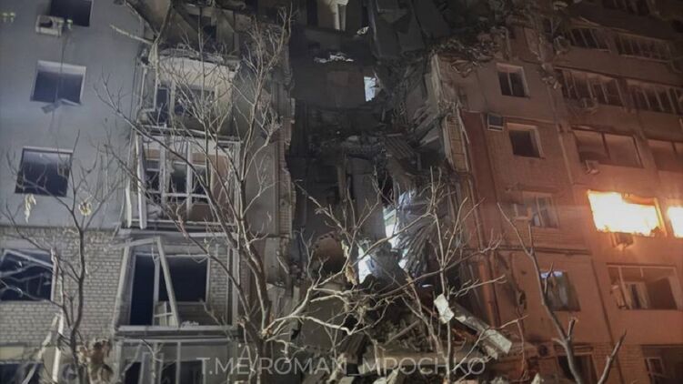 Сегодня ночью россияне ударили управляемой авиабомбой по жилому десятиэтажному дому. Разрушены пятнадцать квартир – с 1 по 10 этаж одного из подъездов. Пострадали шесть человек.