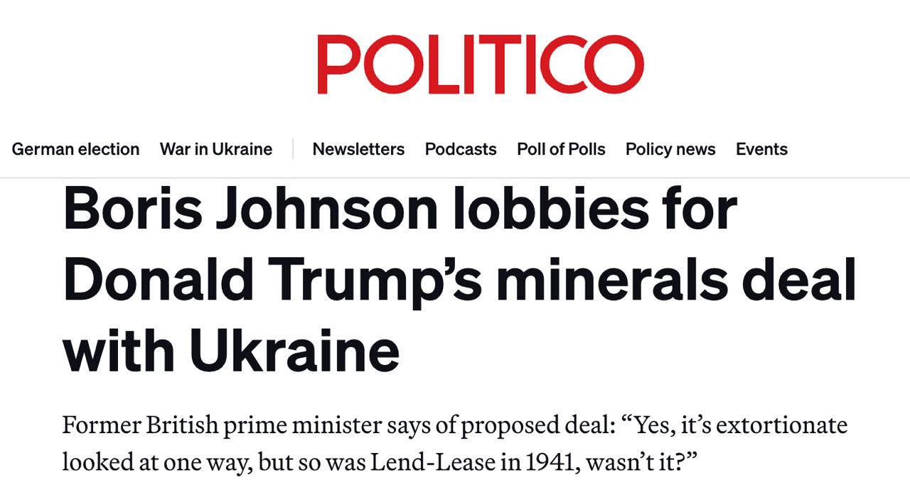 Вчера мы приводили комментарий Джонсона соглашения между Украиной и США о месторождениях, в котором он назвал предложенный Вашингтоном вариант договора аферой.