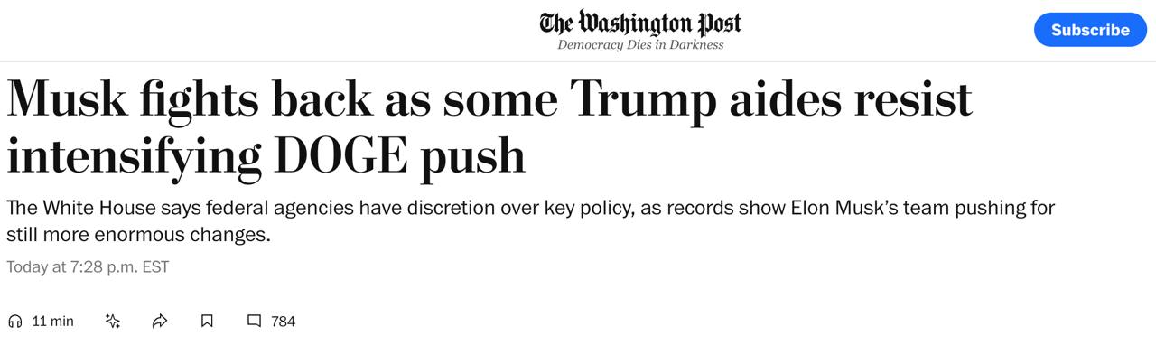 Маск публично осудил такие действия и заявил о необходимости выполнить его распоряжение. А Трамп на днях призвал Маска действовать "агрессивнее" по сокращению государственных расходов.