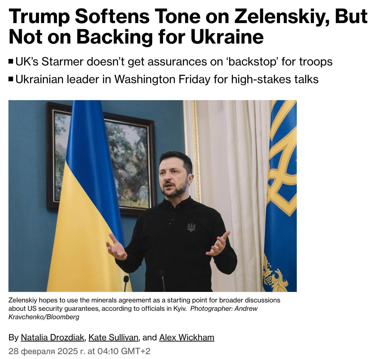 Трамп смягчает тон в отношении Зеленского, но не в отношении поддержки Украины - Bloomberg