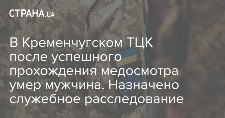 В Кременчугском районном территориальном центре комплектования умер мобилизованный вскоре после прохождения военно-врачебной комиссии, которая признала его годным к военной службе.