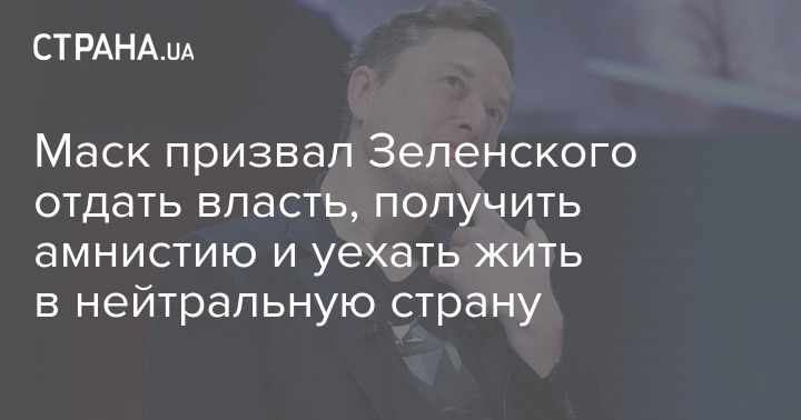 Близкий к Дональду Трампу американский бизнесмен Илон Маск призвал Владимира Зеленского уйти из власти, уехать из Украины в нейтральную страну и взамен получить амнистию.