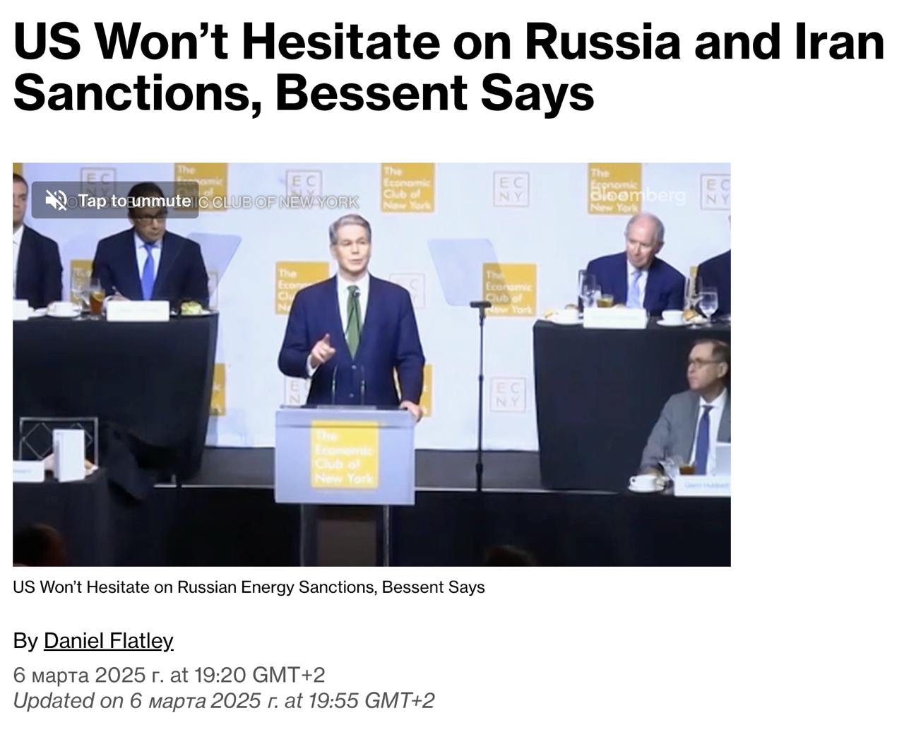 Напомним, Трамп вскоре после инаугурации говорил, что не исключает санкций против российской энергетики, если РФ не пойдет на переговоры.