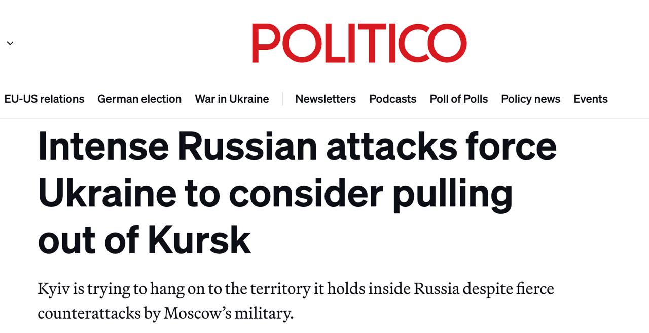 Politico цитирует мнение военного аналитика Яна Матвеева. По его словам, за последние дни ход битвы в Курской области "радикально изменился".
