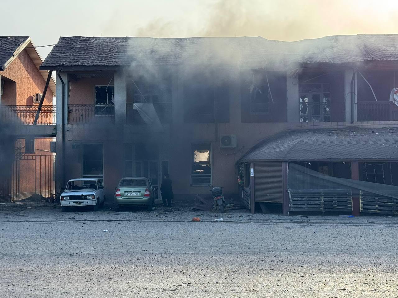 В Балаклее два дрона попали в учебное заведение, повреждены жилые дома, админздания, больница, кафе и авто. Вспыхнул пожар на площади 50 кв.