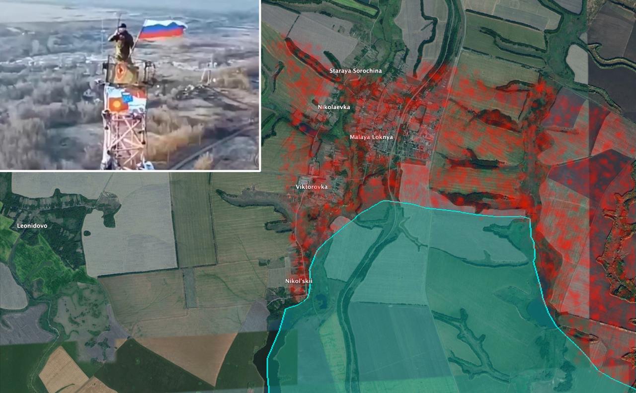 Он публикует кадры с россиянами на здании исправительной колонии в Малой Локне - ключевого объекта в этой деревне.
