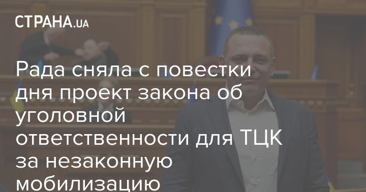 Верховная Рада Украины сняла с повестки дня законопроект, вводящий уголовную ответственность для служащих территориальных центров комплектования в случае мобилизации мужчин без законных оснований.