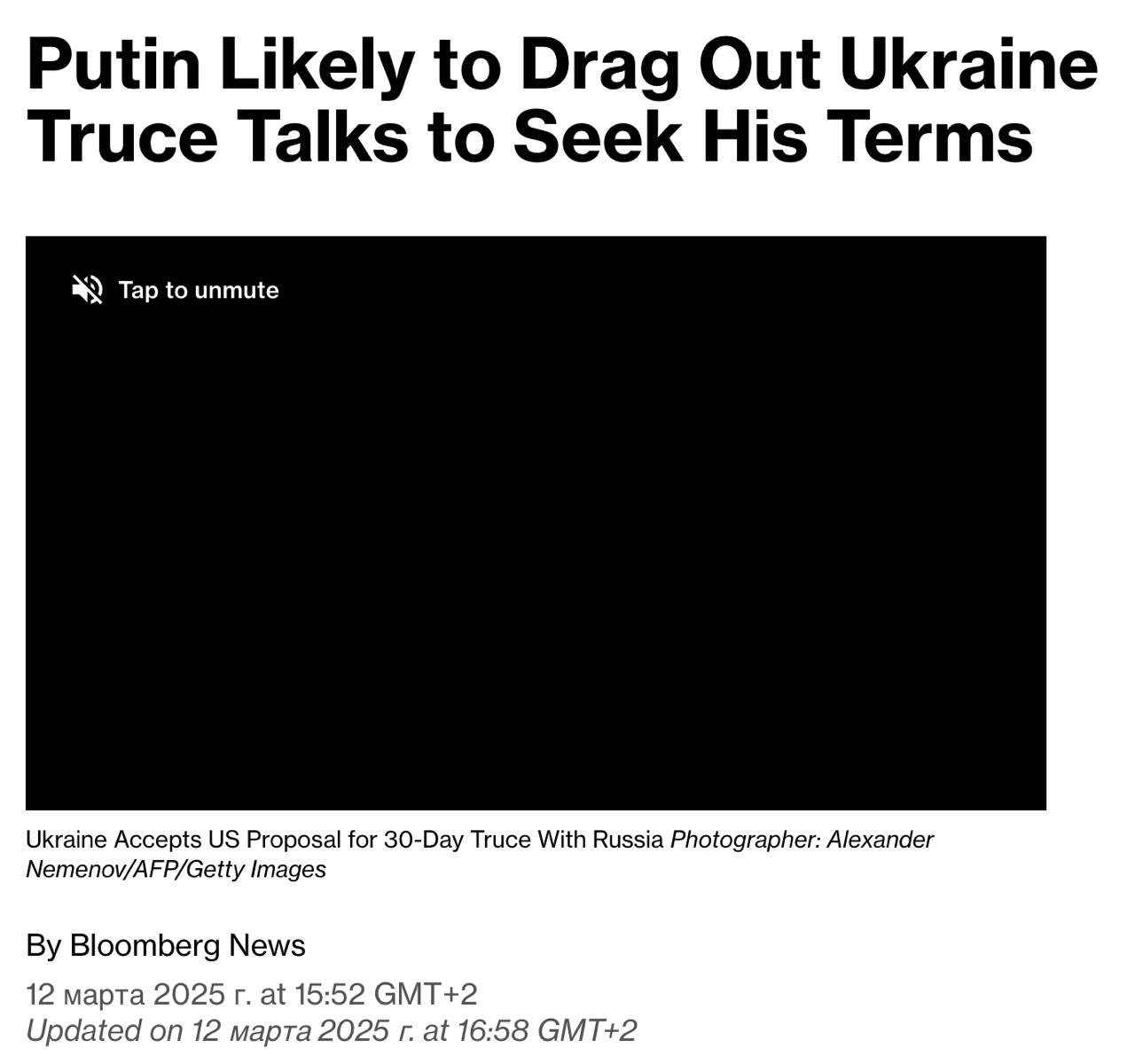 17.25 Путин, вероятно, согласится на перемирие в Украине, но выставит условия, пишет Bloomberg со ссылкой на источники.