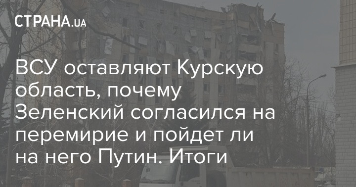 То есть, скорее не готовность Киева пойти на прекращение огня стало причиной отхода ВСУ из Курской области, а тяжелое положение и отступление украинских войск в Курской области стали одной из причин (наряду с требованиями американцев), почему украинские власти согласились на перемирие, понимая, что они уже не смогут использовать один из своих главных козырей, а потому и тянуть далее с переговорами о прекращении огня не имеет смысла.