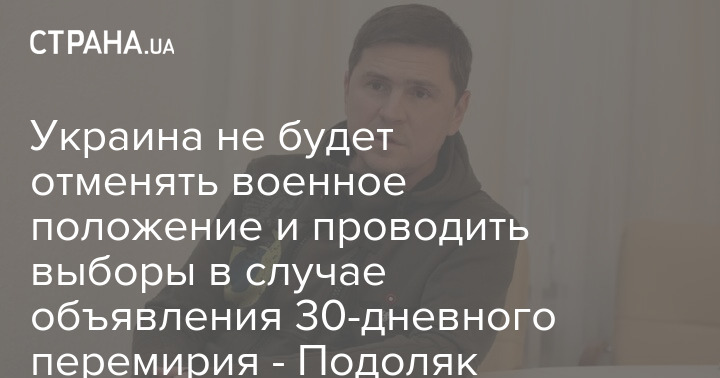 "30-дневное перемирие - это не конец войны. Ситуация будет непредсказуемой. Отмена военного положения и мер по защите страны невозможна за столь короткий срок. Потребуются переговоры, а также проверенные наблюдатели, которые смогут обнаружить нарушения перемирия и обеспечить разъединение сторон. Мы должны сохранять боеспособность до тех пор, пока ситуация не будет урегулирована. В нестабильной ситуации невозможно гарантировать безопасность избирательных участков и проведения предвыборной кампании. 30-дневное прекращение огня не разблокирует выборы", - заявил Подоляк.