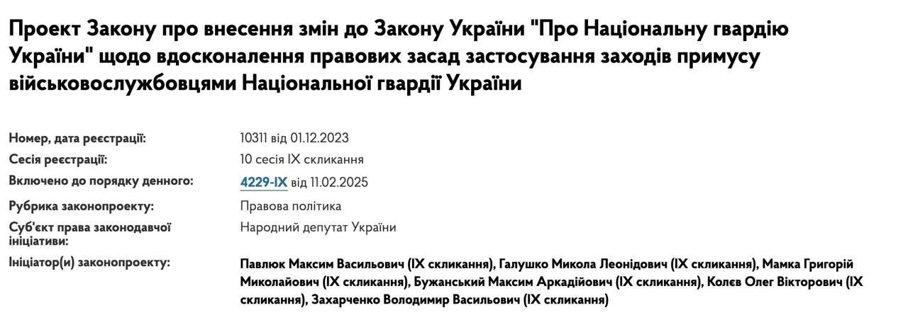 Комитет Верховной рады Украины по вопросам правоохранительной деятельности одобрил законопроект №10 311, который дает право Национальной гвардии использовать огнестрельное оружие, слезоточивый газ и беспилотные аппараты против митингующих.