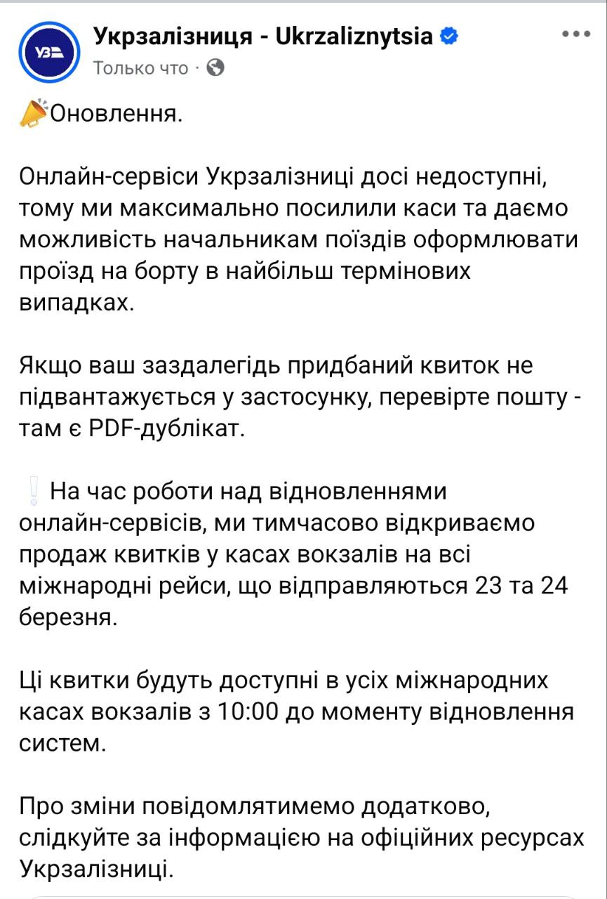 Из-за масштабного сбоя компания открыла больше билетных касс. Отмечается, что до восстановления онлайн-систем, билеты на все международные рейсы, отправляющиеся 23 и 24 марта, можно приобрести также в кассах вокзалов.