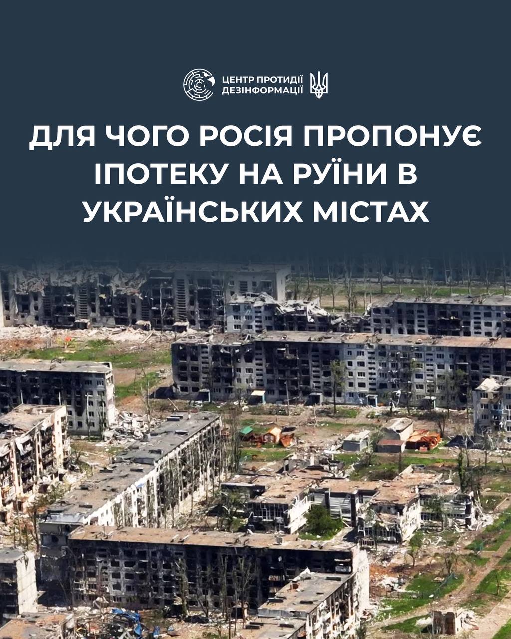 "Таким образом, Москва продолжает продвигать свою стратегию по поощрению россиян переселяться на оккупированные территории. Враг пытается создать иллюзию, будто в захваченных регионах происходит восстановление и туда возвращается мирная жизнь. Хотя на самом деле после тяжелых боев в Бахмуте или Волновахе этого самого вторичного жилья, пригодного для ипотеки, практически не осталось", - говорится в сообщении