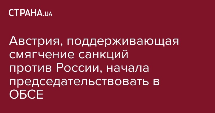 Австрия, которая выступает за смягчение санкций против РФ, начала председательствовать в ОБСЕ Австрия переняла от Германии председательство в Организации по безопасности и сотрудничеству в Европе в 2017 году. Об этом сообщает пресс-служба ОБСЕ.