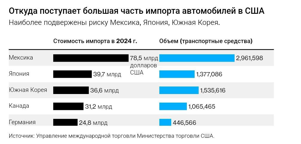 Этот шаг рискует нарушить работу североамериканских автопроизводителей, которые полагаются на высокоинтегрированные цепочки в США, Мексике и Канаде, также отмечает Bloomberg.