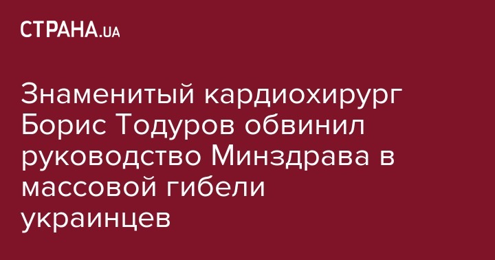 Знаменитый кардиохирург Борис Тодуров обвинил руководство Минздрава в массовой гибели украинцев