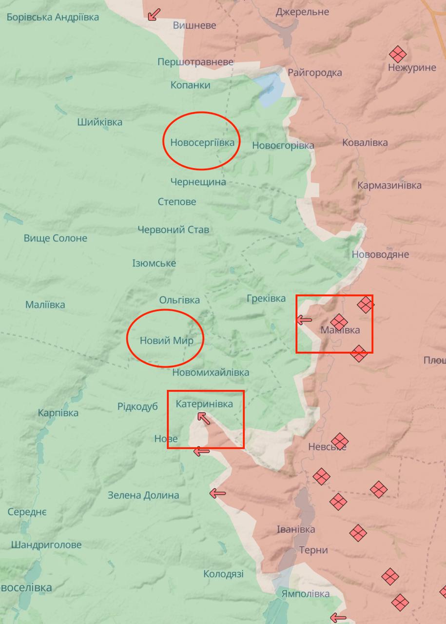 Российские военкоры утверждают, что РФ попытается объединить два плацдарма на правом берегу реки Жеребец: основной около Новолюбовки и меньший около Макеевки. Ожидается, что россияне могут попытаться обойти позиции ВСУ в Новосергиевке, Дружелюбовке и Новом Миру.