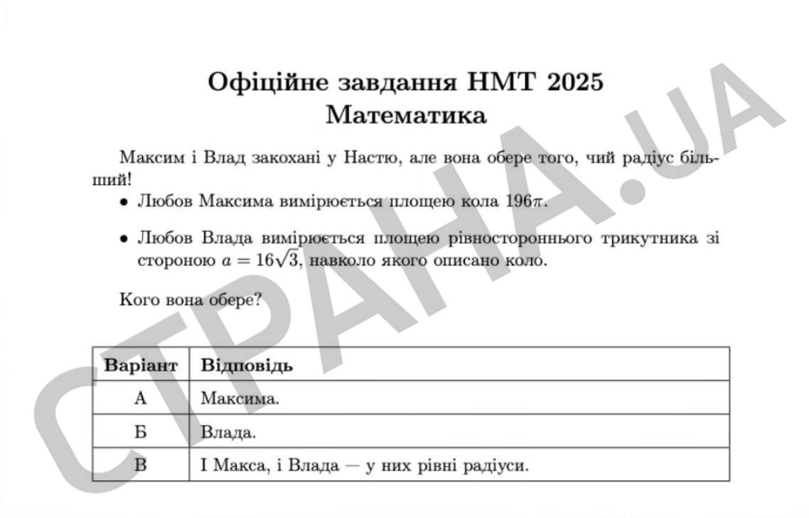 В заданиях по математике Национального мультипредметного теста (НМТ) есть задача, по условию которой нужно определить, какого парня выберет некая Настя.