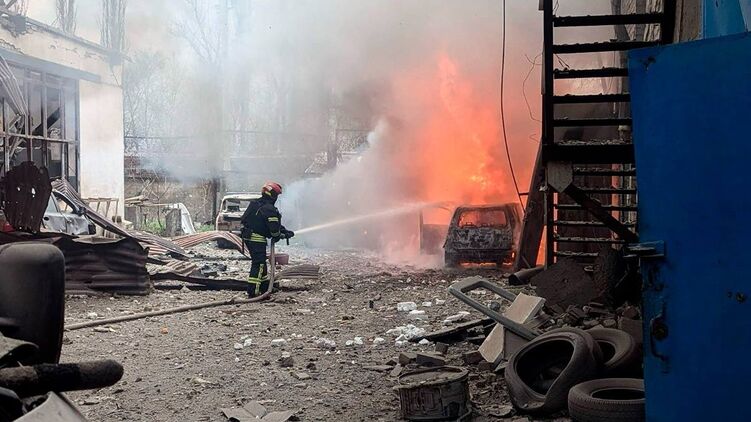 Фото последствий удара по городу опубликовала Государственная служба по чрезвычайным ситуациям.