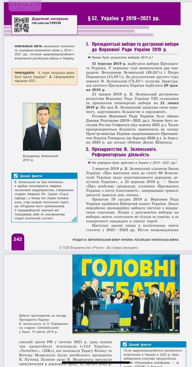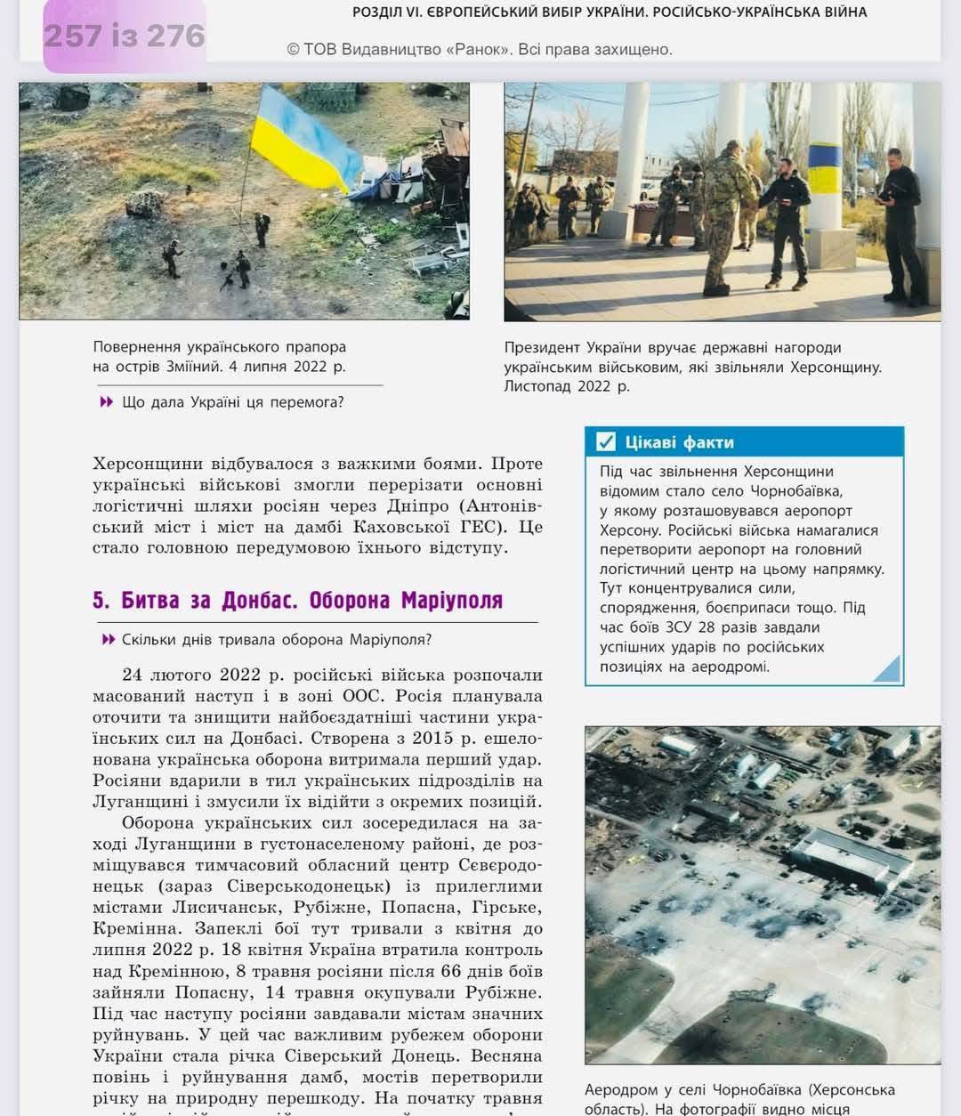 В этих пособиях несколько глав посвящены событиям последних лет, включая президентство Владимира Зеленского и полномасштабное вторжение Российской Федерации.