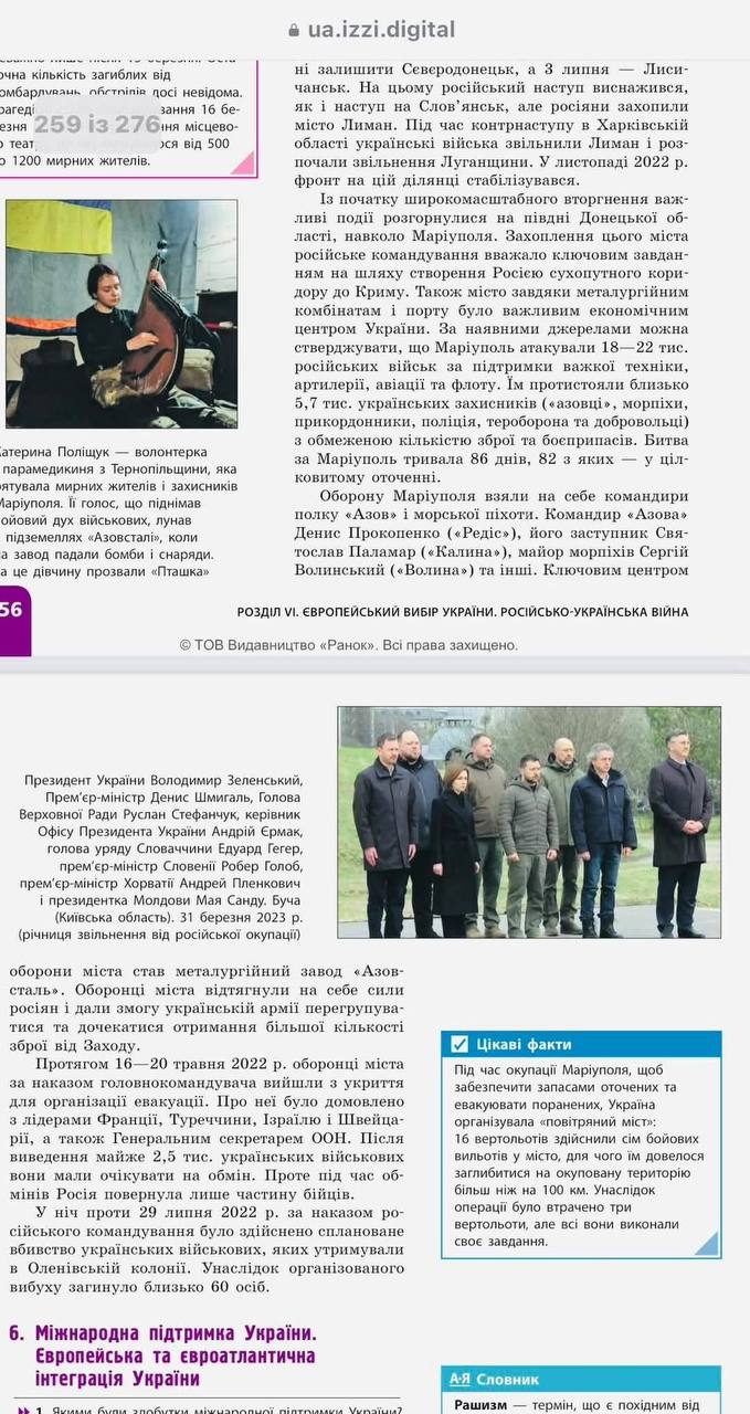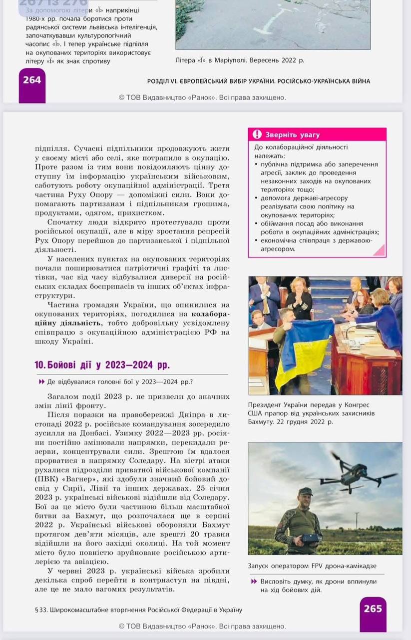 В конце этой главы (в ней описаны события до 2024 года) школьникам предлагают обсудить, что мешает Украине стать членом ЕС и НАТО.
