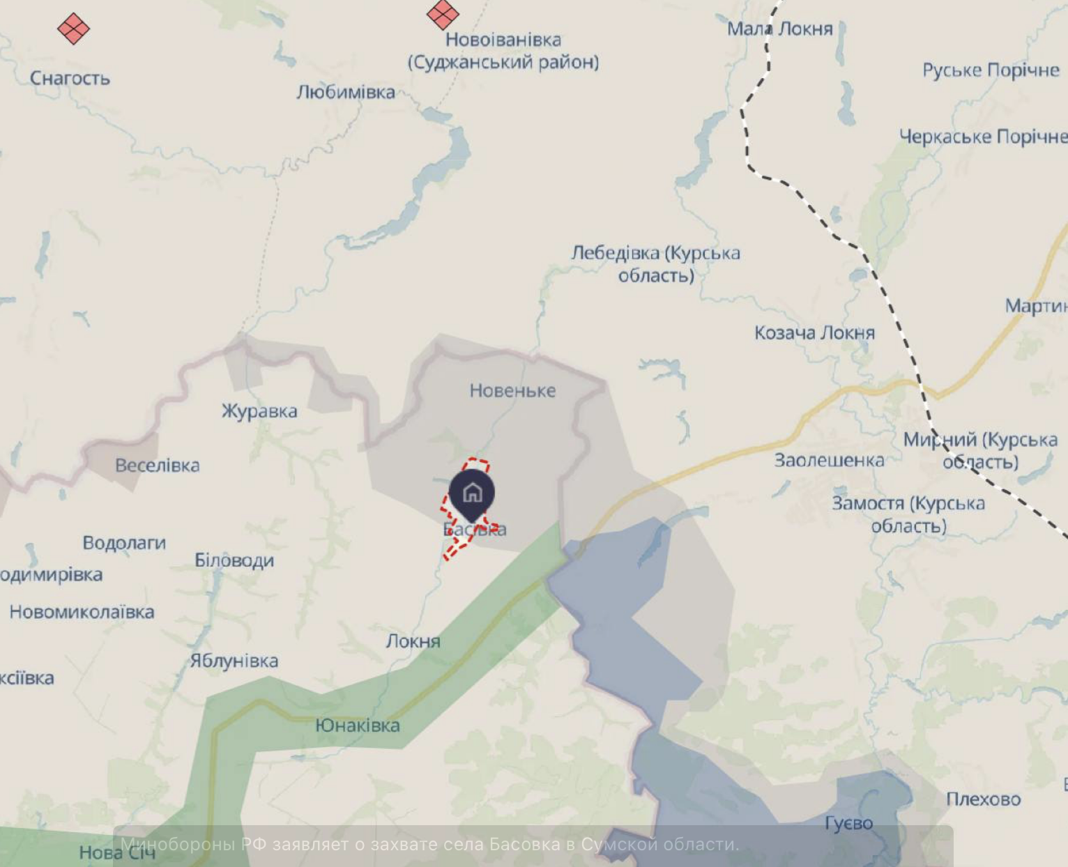 За Басовку идут бои уже несколько недель. Россияне стремятся овладеть селом с целью выйти вплотную к трассе на Суджу и далее в тыл группировки ВСУ, которая ещё удерживает небольшой плацдарм в Курской области.