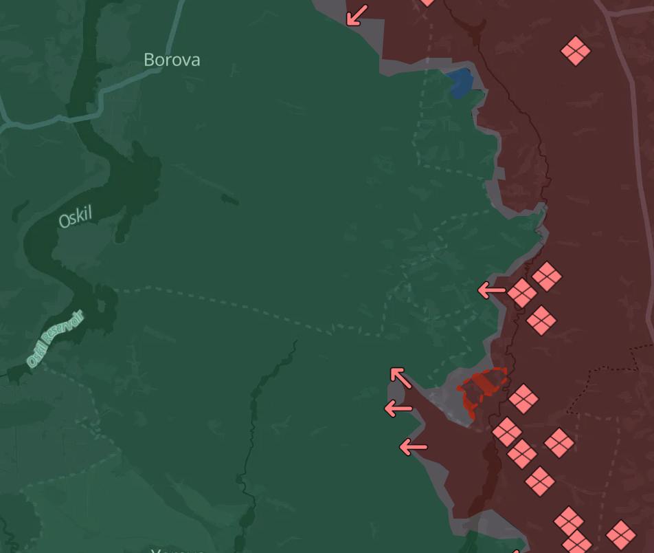 Также россияне продвинулись на западном берегу реки Оскол на севере Харьковской области (район Каменки) и в Новолюбовке по направлению Боровой.