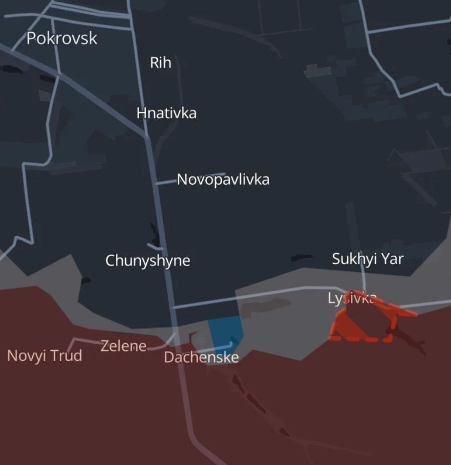 7.55 Российские войска продвинулись к югу от Покровска в Лысовке, сообщает военный паблик Deep State.