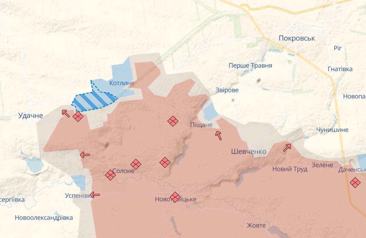 Также россияне продвинулись около Архангельского (восточнее Покровска) и Надеждинки (у границы с Днепропетровской областью).