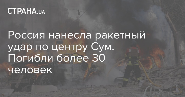 Сегодня утром россияне нанесли удар двумя баллистическими ракетами по центру Сум. Погиб 31 человек, из них 2 ребенка.