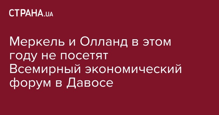 Представители Всемирного экономического форума в Давосе подтвердили, что в этом году канцлер ФРГ Ангела Меркель и президент Франции Франсуа Олланд не примут в нем участия, передает DW.