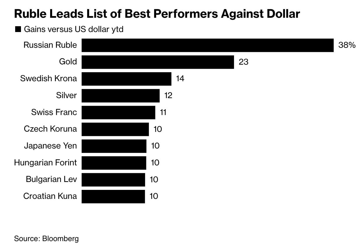Обогнал даже золото. С начала года российский рубль укрепился к доллару больше всех мировых валют - Bloomberg