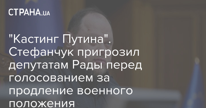 Спикер украинского парламента Руслан Стефанчук заявил, что грядущее голосование депутатов за продление военного положения покажет результаты "кастинга Путина" в Верховной Раде.