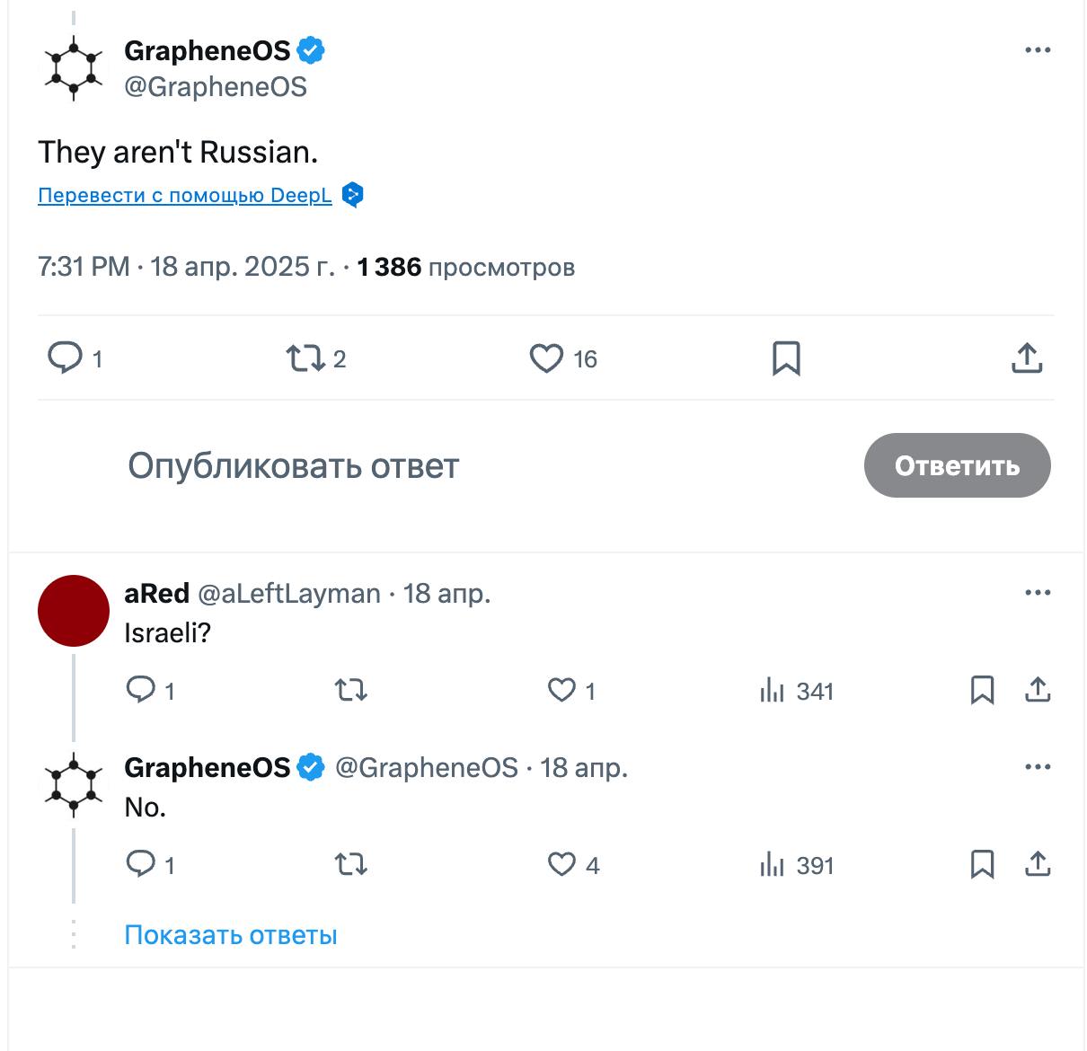 Об этом сообщается на странице GrapheneOS в социальной сети Х.