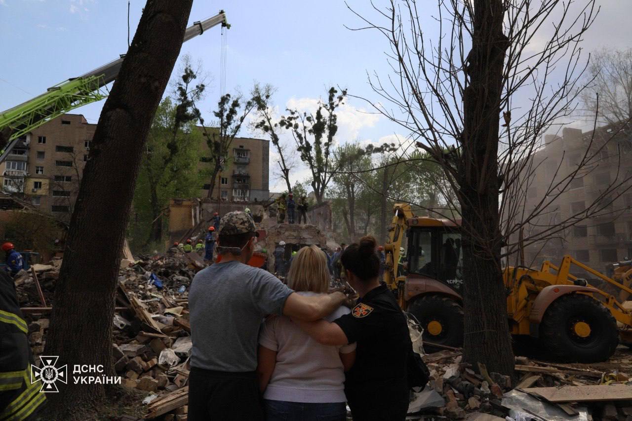 • в Киевской области повреждены пятиэтажки в Бучанском районе (на фото), склад под Вышгородом, также был пожар под Броварами.