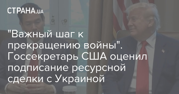 Государственный секретарь США Марко Рубио назвал подписание соглашения с Украиной о недрах "важным шагом к прекращению войны".