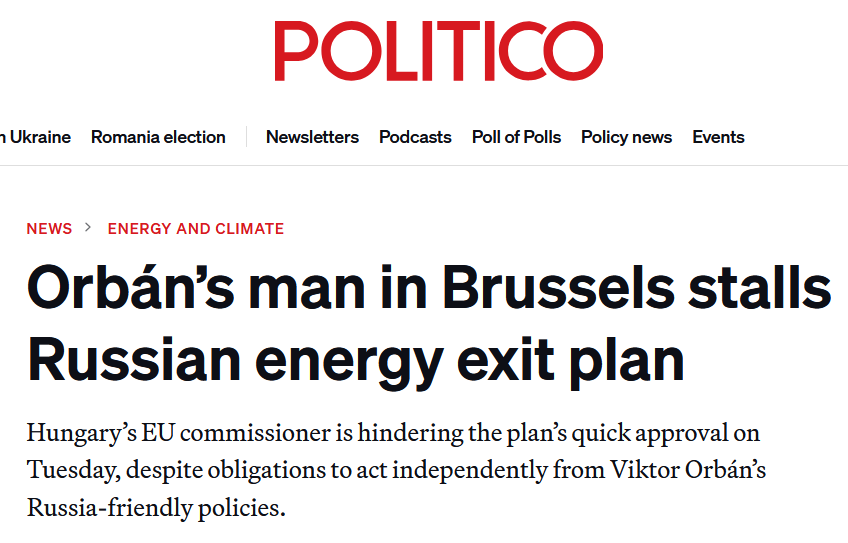 Представитель Орбана в Брюсселе тормозит план Евросоюза по отказу от российских энергоносителей - Politico