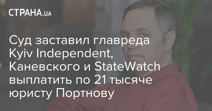 С главного редактора издания The Kyiv Independent Ольги Руденко, организации "Стейтвотч" и активиста Глеба Каневского принудительно взыскали по 21 тысяче гривен в пользу известного юриста Андрея Портнова.