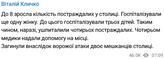 Ночью россияне атаковали Киев беспилотниками "Шахед" и одной баллистической ракетой. Погибли два человека, восемь человек получили ранения и травмы.