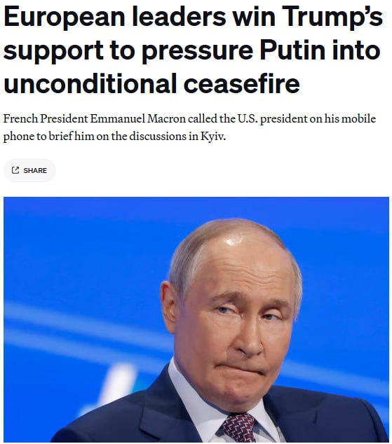 Президент Франции Эмманюэль Макрон в субботу звонил из Киева Дональду Трампу, и "коалиция желающих" заручилась его поддержкой в давлении на РФ, хотя президент США ещё может поменять свое мнение.