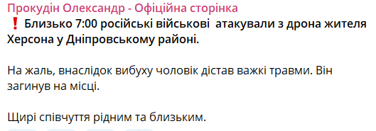 08:10 Около 7:00 российские военные атаковали с дрона жителя Херсона в Днепровском районе, сообщает ОВА.